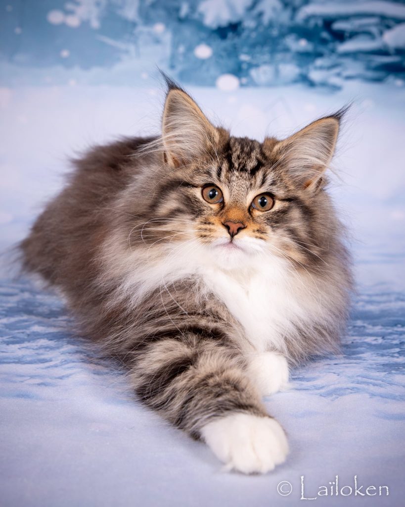 Un grand merci à son éleveuse Marie-Pierre FRANÇOIS (chatterie de LAÏLOKEN – Nancy) de nous avoir confié cette belle et adorable chatonne.