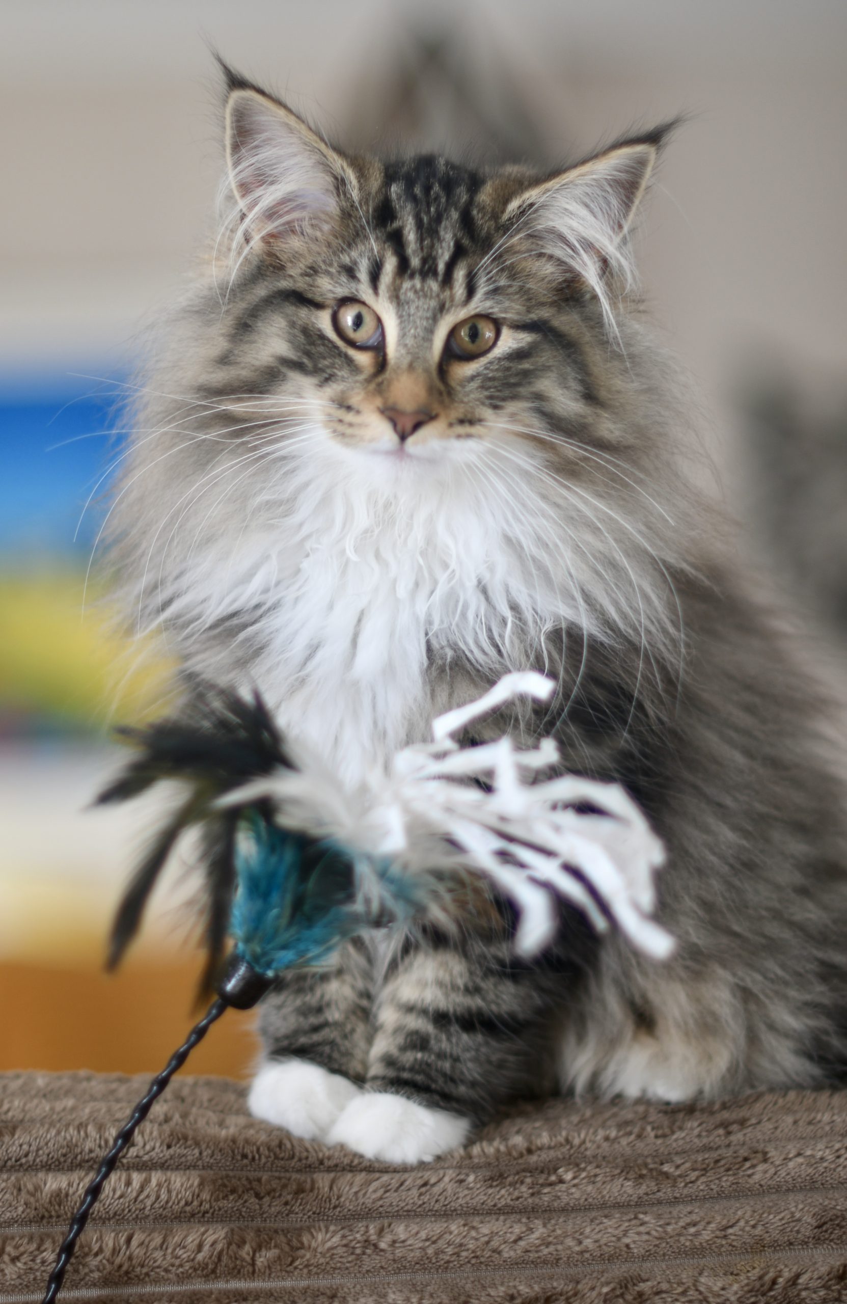 Au niveau caractère, une certaine réserve la caractérise, elle n’accorde pas sa confiance au premier venu mais ensuite c’est câlins à gogo ! Et si elle hésite encore, il suffit d’agiter un plumeau et elle ne sait pas résister, c’est une joueuse invétérée 😄 Elle adore aussi être brossée et peignée, un gros avantage vu la fourrure qu’elle a !