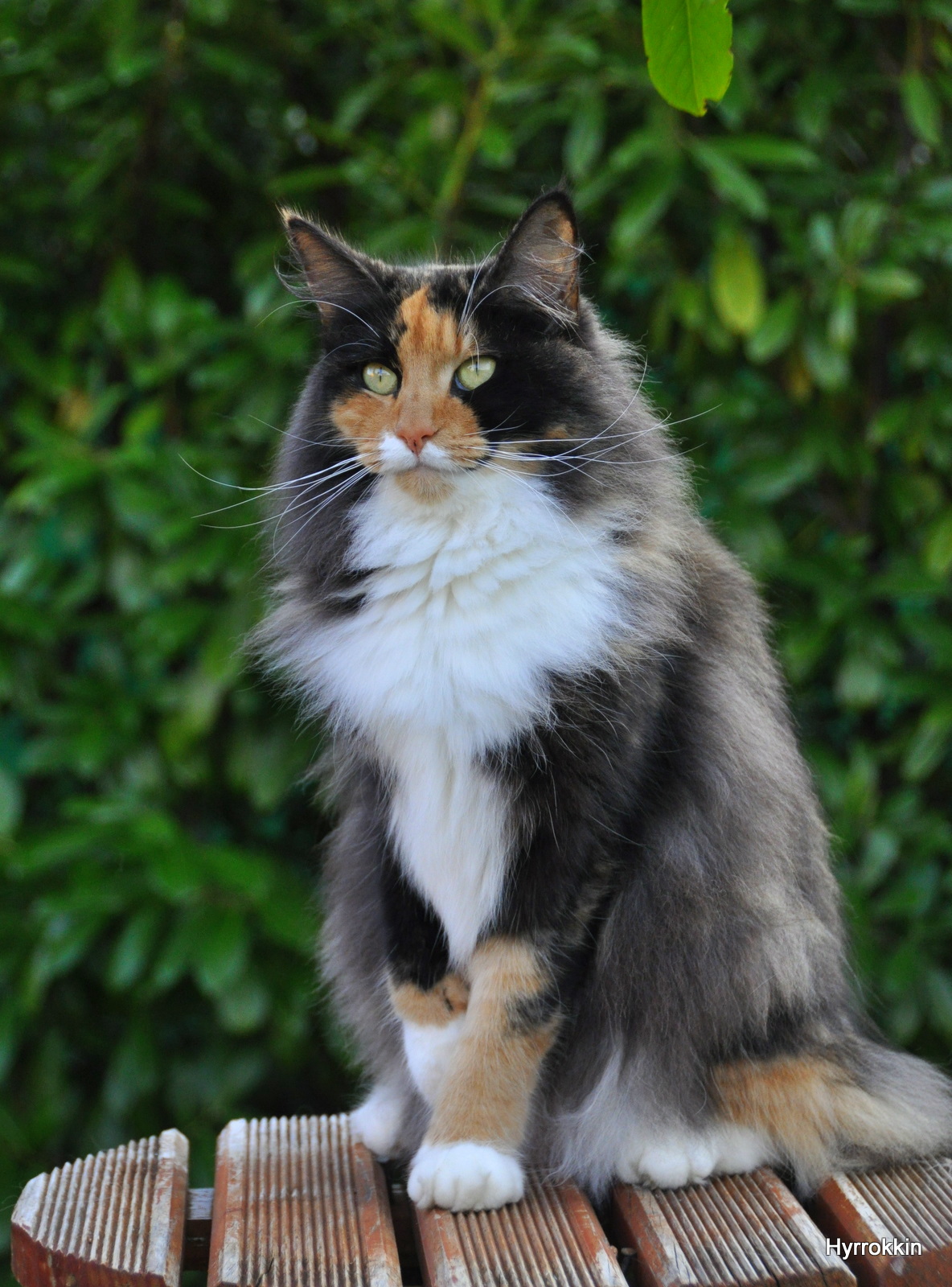 Eléa (Ethéméa de son nom de « baptême » ) est mon petit Arc en Ciel ! J’adore sa couleur tortie smoke et blanc ainsi que son caractère adorable. C’est une chatte qui cherche le contact en permanence mais qui, à côté de ça, n’a peur de rien : c’est une aventurière dans l’âme ! Au niveau type, elle a énormément de qualités, notamment un bon menton, des oreilles grandes et bien placées, de beaux yeux dorés bien en amande, une bonne ossature et un beau panache. Le profil pourrait être plus droit et le poil plus fourni mais nul n’est parfait … C’est de plus une petite chipie, toujours à aller voir dans nos assiettes si la salade n’est pas plus verte qu’ailleurs … enfin bref, c’est une Ecaille !